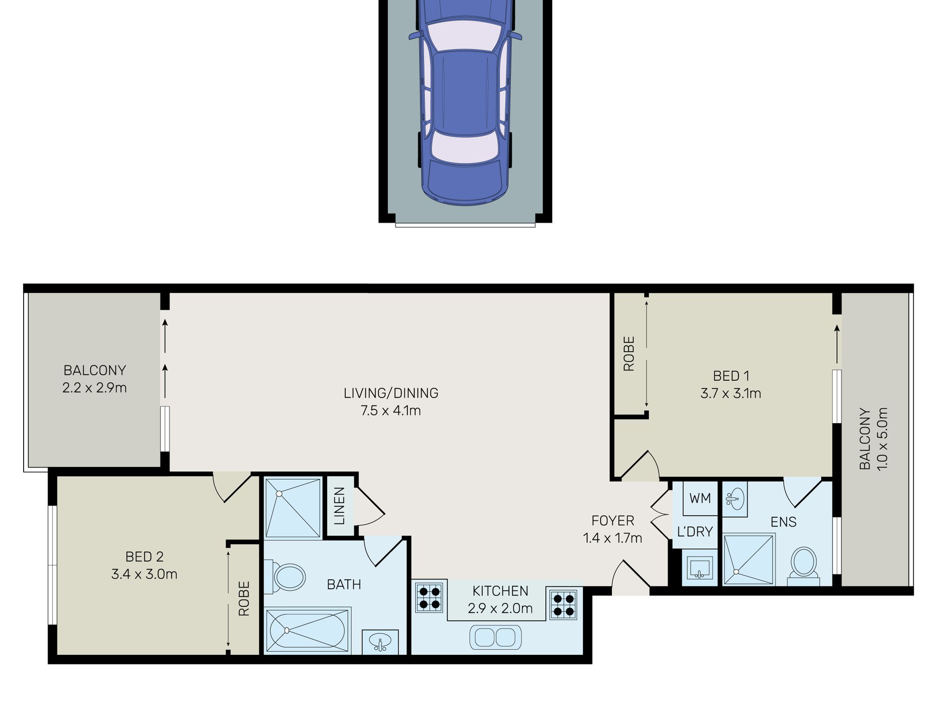 • Two spacious bedrooms with built-in wardrobes - master with ensuite and private balcony