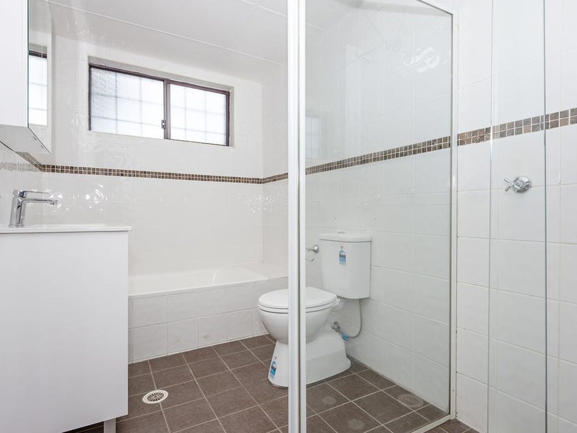 • Bright bathroom with modern fixtures
